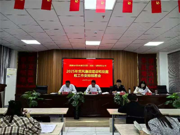 2025年3月21日,新疆金奇阳光建设投资(集团)有限责任公司在集团公司二号会议室召开2025年党风廉政建设和反腐败工作安排部署会议。集团公司全体人员参会,会议由集团公司党支部书记、董事长庞涛同志主持。